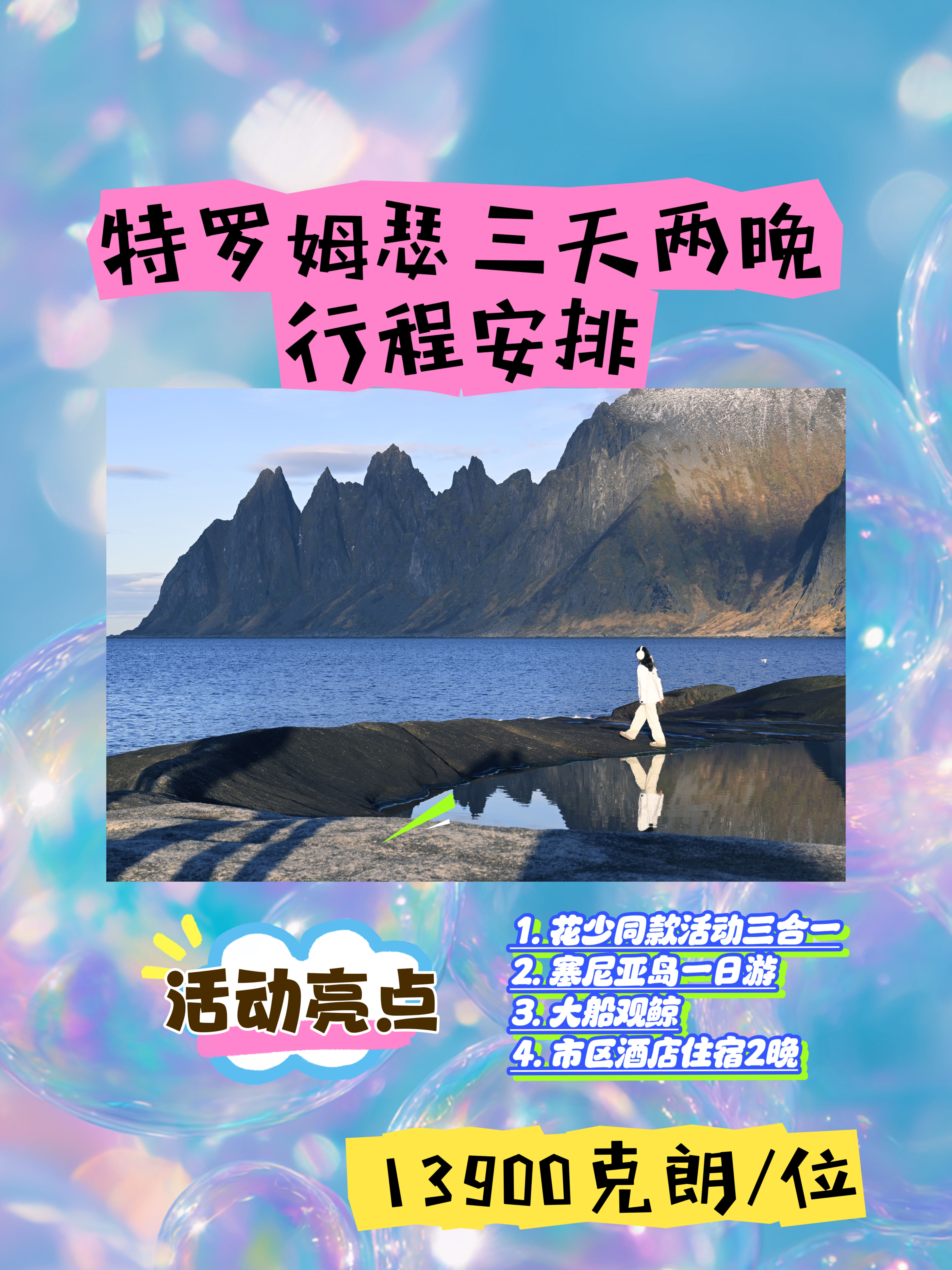 行程途经:Husøy 渔村、Bergsbotn 高空观景台、魔鬼之齿 Tungeneset、Mefjordbotn、白沙滩 National Park Beach